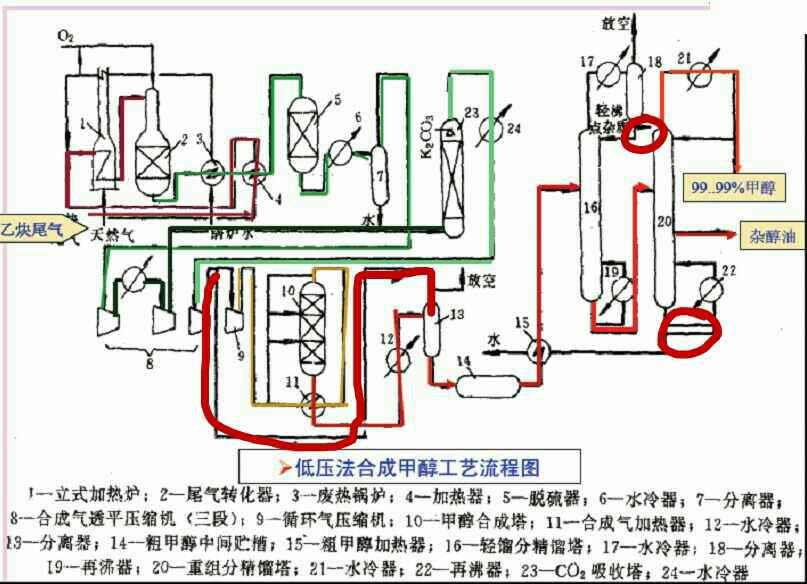 1甲醇合成单程转化率底,气液分离后气相循环回合成塔反应,液相去精馏系统 2精馏是典型双塔精馏~ 发自小木虫Android客户端 |