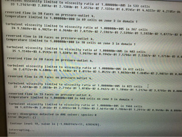 原来我计算的时候也有这个问题,我可以给你明确的回复,给我金币哦!嘿嘿!出现这个情况就是发散的意思!你应该从以下几方面着手,第一检查网格质量,结构网格必须大于0.4,且网格方向应该和气流方向一致,这可以减小数值耗散,提高计算精度,第二,检查边界条件是否合理,第三修改松弛因子,第四调整系统默认的气流参数的限制值!按我说的绝对没问题,绝对,绝对! 发自小木虫Android客户端 |