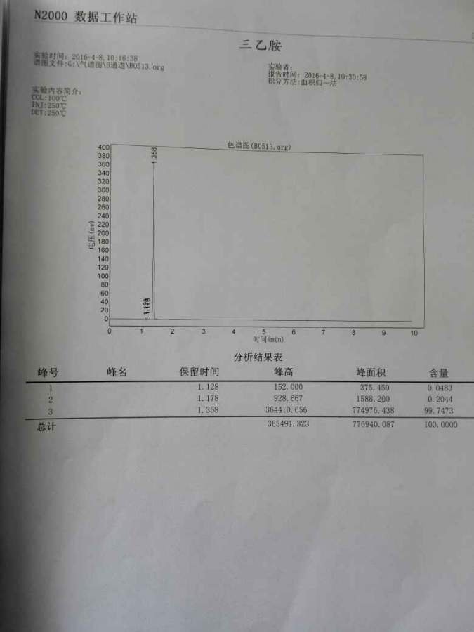 三乙胺的沸点是89.7C,可以考虑用气相分析。色谱柱需要仔细选择一下。
