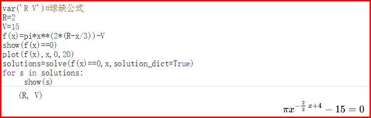自己数学功底有限,问的这个问题自己没推导出来,望帮帮忙! 现要将球缺公式V=πh^2(R-h/3)变形,用V表示h,即已知球缺体积V,求球缺高h=? 在这里先谢过了! |