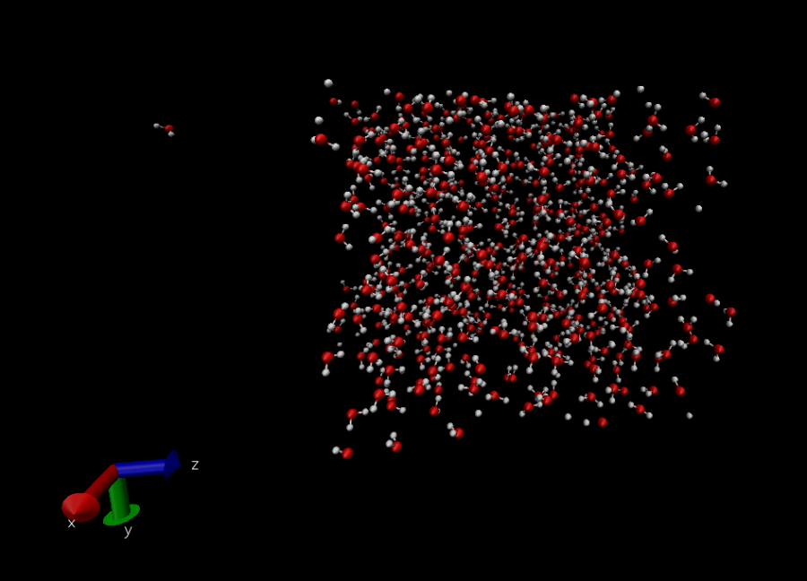 大家好 最近尝试用LAMMPS模拟水与一些粒子的反应,在水分子自平衡的过程中会出现单个水分子快速跑离水团的现象,十分困扰! 请问为什么会出现这种情况呢? 我在lammps中用reax力场,加了nvt系综,没有更多fix条件了。 具体如下图 有没有大神可以帮忙解答一下,十分感谢!!! h2o.png |