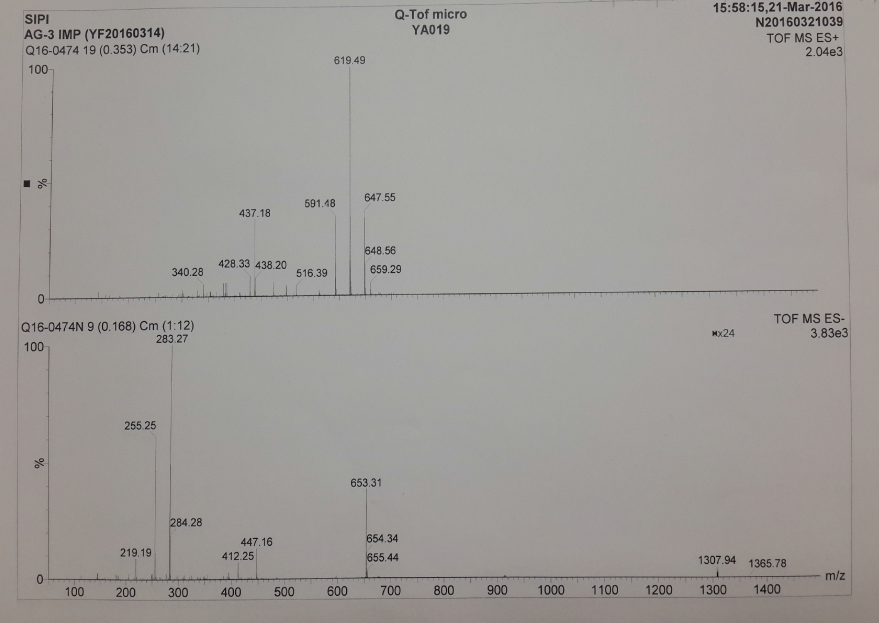求助大神帮忙解析质谱+氢谱+碳谱。。。。母体为下图,其中R无法确定,求大神帮忙啊。。。氢谱与碳谱溶剂为氘代氯仿,所用原料见下图,这个杂质是高温产生的 可能的母体结果.png 氢谱.png 碳谱.png 质谱.png 原料.png |