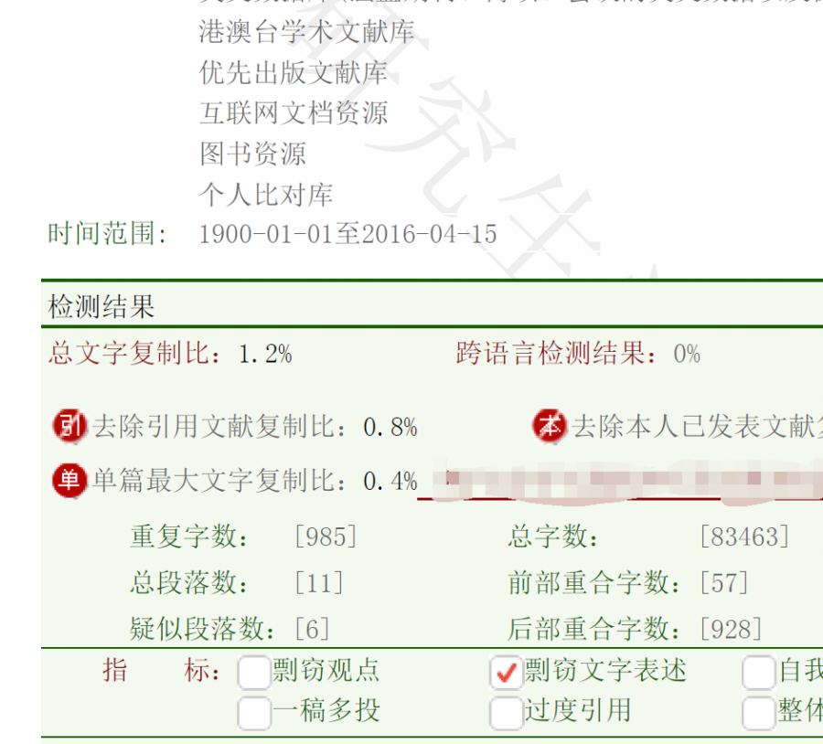 博士学位论文查重重复率1.2%,但报告指标栏说剽窃文字表述,这个有问题么?