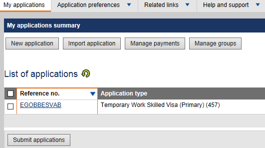 我即将去澳洲做博后,在网申457签证时,填完所有申请信息后,发现不能上传附件,按照操作指南说明:点击reference no会出现关于上传附件等一系列下拉菜单(图2),但是我点击后没有出现(图1),导致我不能上传附件,这是什么原因呀?我尝试过换浏览器,换电脑都是一样没有出现下拉菜单。到底是哪里出问题啦? 1.我的网申页面 2.网申操作指南页面 |