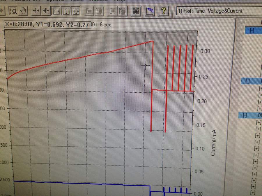我们做的是PEO/LiClO4的固态电解质,两边加上6Li的金属,想通过充电放电使7Li跟6Li交换, 但是只有首次充电会有一定的曲线,后续基本上就是瞬时完成的,不知道是什么原因? IMG_1424.JPG |