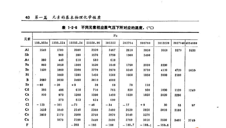 金属单质随温度变化的蒸汽压哪里可以查到? 已有1人参与