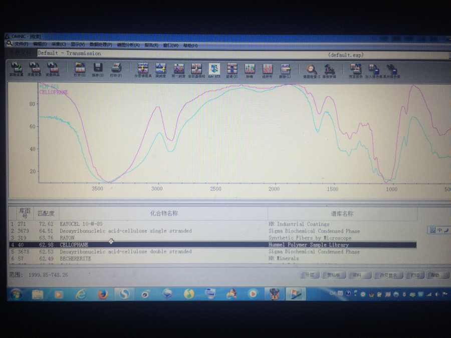 哪位 朋友 可以 检索红外数据库? 附件中是某样品的红外光谱图,spa 和pdf格式,想通过检索数据库,看看和什么东西最接近。 |