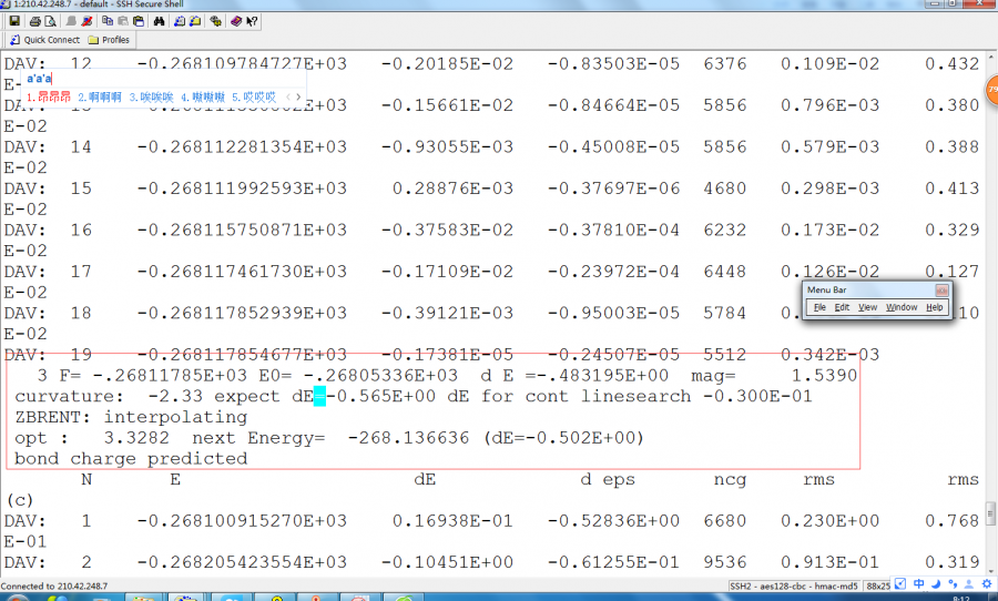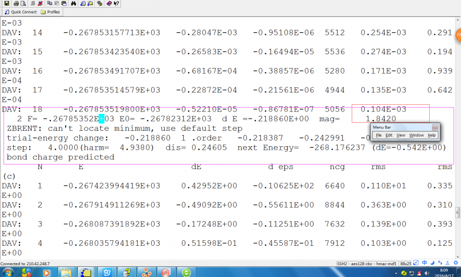 在VASP软件进行掺Ti计算时,在优化这一步,接连提示了两次,如图中矩形框内所示问题,之后我的计算内容就被踢下去了,请问这两个矩形框内给出的提示是什么意思? QQ截图2016ti优化2.png QQ截图2016优化3.png |