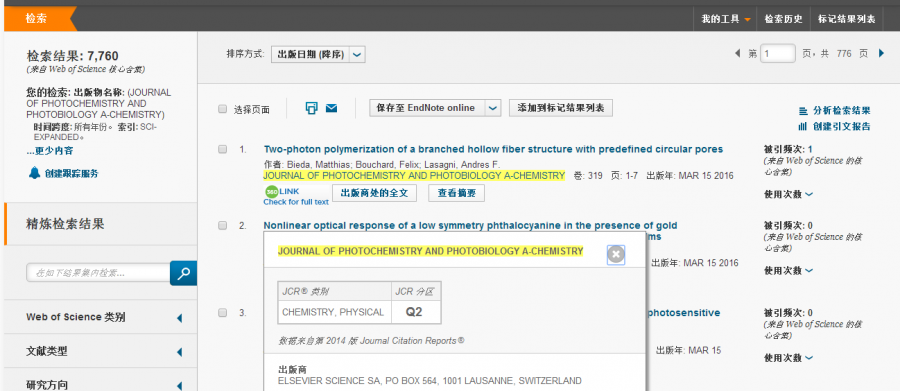 JOURNAL OF PHOTOCHEMISTRY AND PHOTOBIOLOGY A-CHEMISTRY 是否是SCI期刊?目前检索到哪一期了? O(∩_∩)O谢谢 |