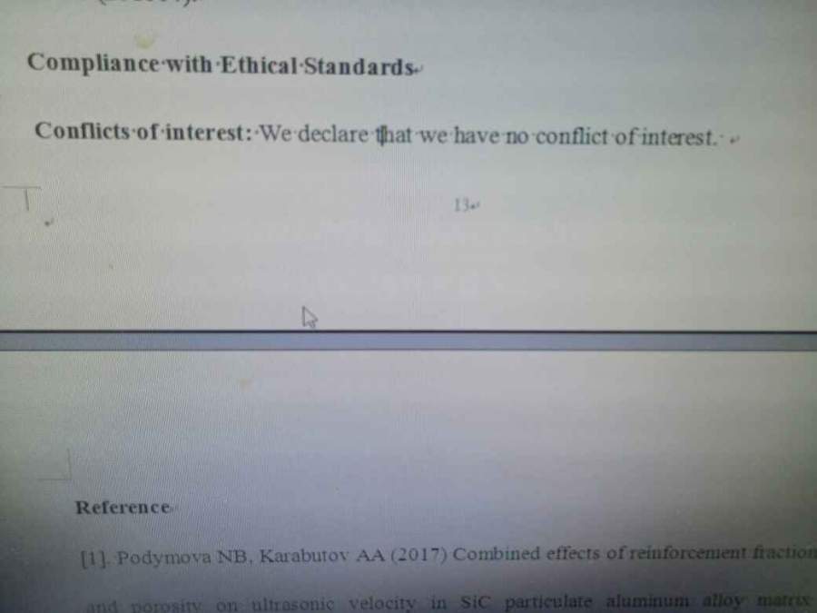 最近向journal of materials science 投了一篇文章,然后给我返回来需要修改,在参考文献前加一个Compliance with Ethical Standards