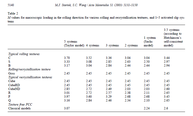 那老师,哪篇文献上有计算的公式呢?我看有个公式是算平均泰勒因子的公式是∑(fi*j/∑mij),其中fi是晶粒体积分数,j为激活滑移系,mij是施密特因子,但是我算单一织构的时候算出来的数据与表格里面的数据对不上的~ 还有就是ebsd能不能表征出不同拉伸应力方向时的平均泰勒因子呢?我看杨平老师的书上说了能得出泰勒因子的分布图,但是我不太清楚能不能有具体的测试数据能导出 发自小木虫Android客户端 |