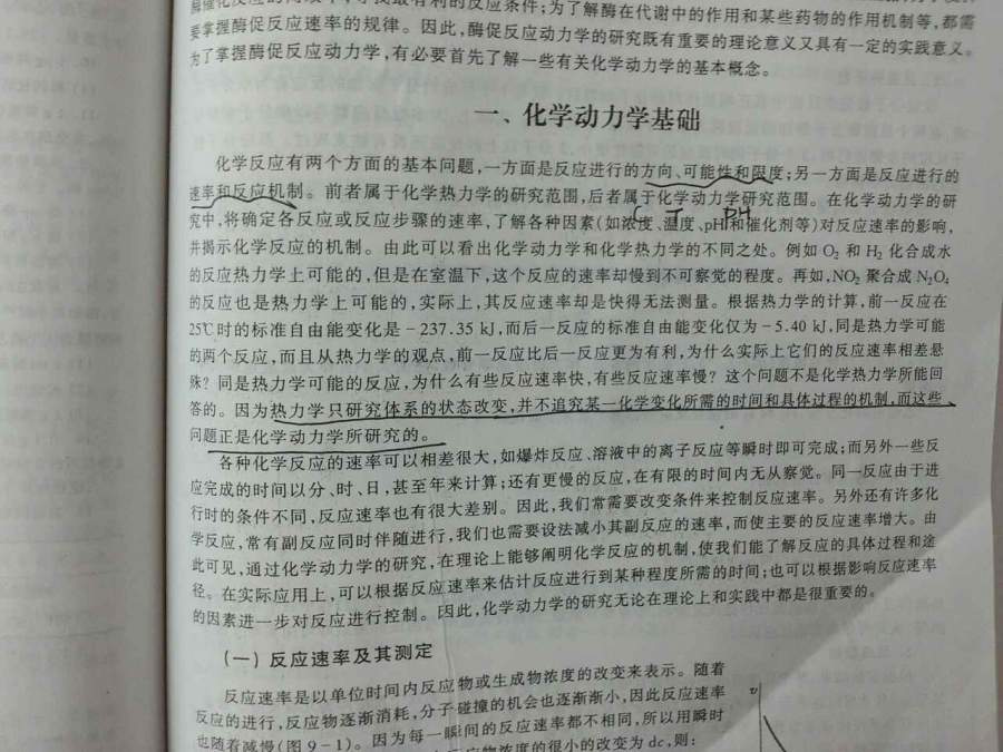 因为热力学只研究体系的状态改变,并不追究某一化学变化所需的时间和具体过程的机制,而这些问题正是化学动力学所研究的。――来自 王镜岩 生物化学中的一句话。酶促反应动力学章节。