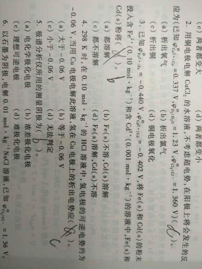 物理化学电解与极化作用,两道选择题求解!! 已有1人参与