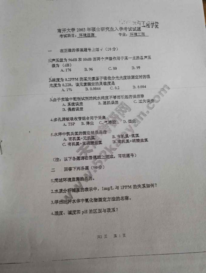 【分享】南开大学环境科学考研真题99-06