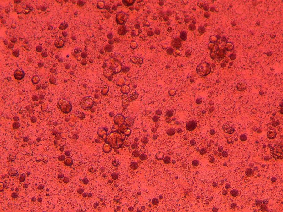 各位大神,小弟最近在做螃蟹的肝胰腺细胞原代,接种后就发现有很多小颗粒物质,会动,但又不像细菌,感觉比细菌大。最初以为是细胞破损溢出的颗粒,但是几天后越来越多,细胞也死的差不多了,请问是什么污染呢? 如下图 这是刚接种完的情况 这是3h以后,感觉更多了 这是40倍 请问这是什么污染呢? |