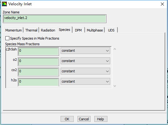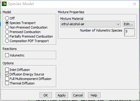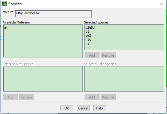 启动了能量方程,标准湍流模型,物质运输方程,混合物选择如下图: 一共有5中物质,分别是: 但是在边界设置的时候,却只显示了四个,如图: 少了氮气,为什么? |