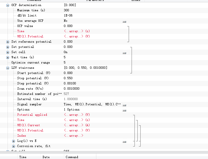 我从师兄那里调出lp程序和直接从电脑程序列表里调出lp程序,扫描速度,终止电压,每步电位都一样,OCP有点不一样,但是做出的曲线差太远了,师兄那里调出lp程序做出的曲线电流有100多mA,电脑程序列表里调出lp程序只有几mA,是不是我还有哪里参数没设置好,现在已经不知道该用哪个程序做实验,真的很着急,看不到希望了......衷心感谢你们了。下面是实验图形,图1,2为从师兄那里调出lp程序做的曲线及参数表,图3,4为直接从电脑程序列表里调出lp程序及参数表,图5,6为文献中的图形 图1.png 图2.png 图3.png 图4.png 图5.png 图6.png@langzhizhou@louderbe |