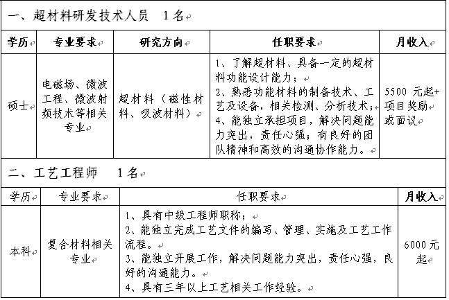 招聘信息 航天科工武汉磁电有限责任公司隶属中国航天科工集团○六八基地,位于九省通衢的湖北武汉,地处素有“武汉•中国光谷”美誉的国家级东湖高新技术开发区。公司以国防系统特种功能材料研制和生产为主,集高品质油漆、内外墙涂料等民品生产和销售为一体的军工企业。 公司秉承“诚信发展、立志卓越”的企业精神,坚持走“军民融合”之路,以航天科技为动力,以市场需求为导向,以技术创新、诚信服务为企业经营宗旨,长期与国内知名大学、国家级科研中心合作,不断突破自我,促进企业科技创新能力快步提升。 公司因发展需要,竭诚聘请国内有志人士加盟,共创公司辉煌。 有意者请将简历投至公司邮箱:whcdzp@163.com (若接到通知能即时到公司参加面试,请投简历(岗位-姓名-专业-学历-学校)并注明到岗时间) 说明:1、个人简历里请说明研究方向、参加过的项目、论文等信息。 2、提交学历证书、成绩单、资格等级证书、推荐信、求职意愿自述等材料。 3、符合要求的进行面试通知,接到通知能即时到公司参加面试,请投简历,并注明到岗时间。 4、福利待遇:五险两金、年底双薪、年终奖、降温费(每年发放4个月,300元/月)、烤火费(每年发放3个月,300元/月)、节日慰问金、生日慰问金等,外地员工可提供住宿。 1.JPG 2.JPG |