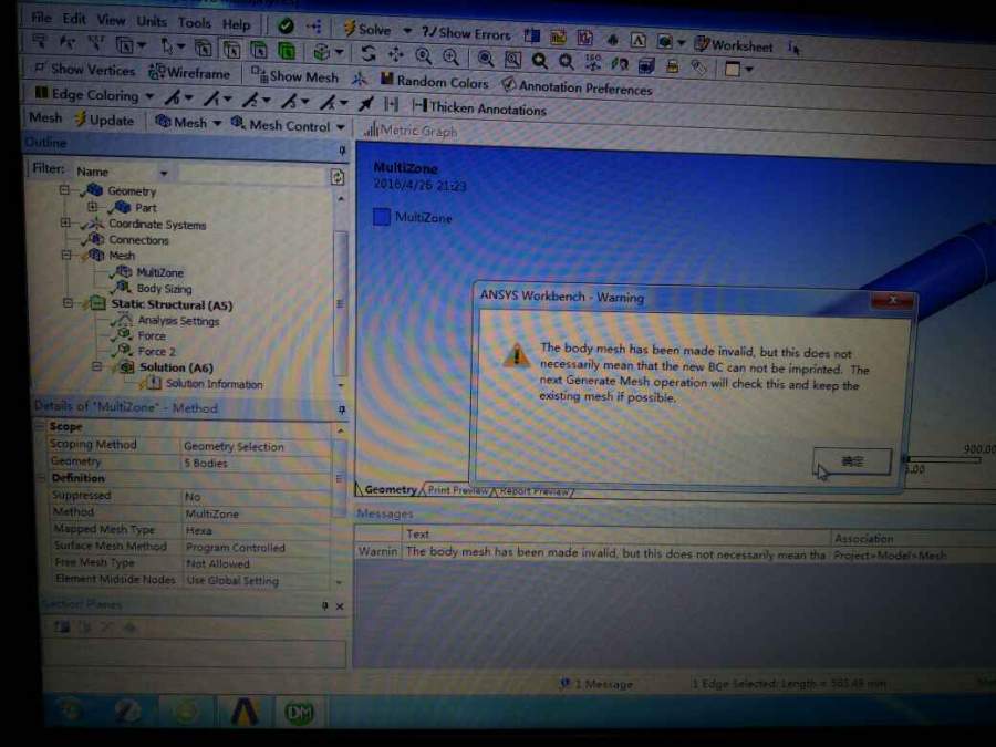 各位虫友,请问一下,为什么划分网格后,施加约束后,约束前总是问号,不能变成对号。而且总是提示有问题,具体如图,谢谢。 @wuming524 发自小木虫Android客户端 |