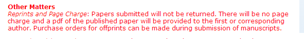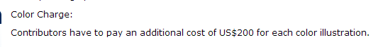 你不订阅就行了,应该是有个出版打印选项,让你选择图片彩色(在线和出版物)或是黑白(在线彩色,纸张黑白),彩色要钱,黑白不掏钱,应该是这样的,艾斯维尔是这样,你的就不清楚了 发自小木虫IOS客户端 |