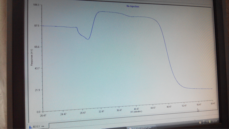 串了两根柱子上去。第一次做出的图如下。。。有两个情况。第一个情况是:压根出来的就不是峰。。第二个情况是:没有图形出来。而且两个都没有明显的溶剂峰。求教大神为什么会这样的?是不是运行的时间不够?还是样品的浓度太低了? P60427-141758.jpg P60427-141956.jpg |