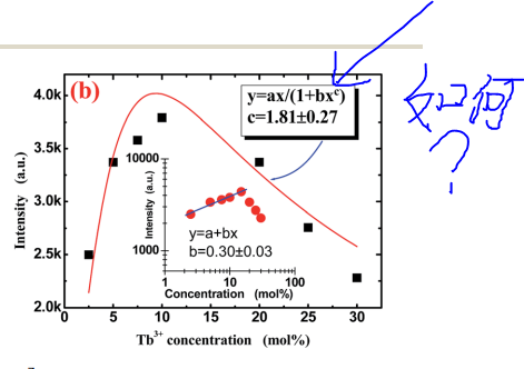 稀土掺杂发光材料 关于浓度淬灭计算 y=ax/(1+bx^c)的求助已有2人参与