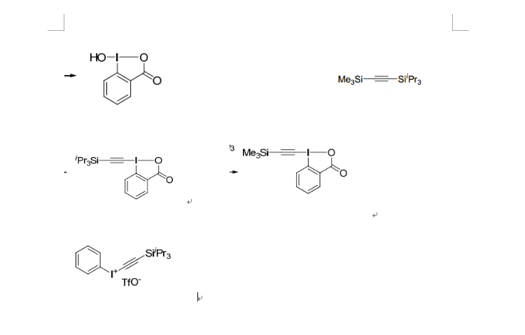 1-Hydroxy-1,2-benziodoxol-3(1H)-one Triisopropylsilyl trimethylsilylacetylene 1-[(Triisopropyllsilyl)ethynyl]-1,2-benziodoxol-3(1H)-one 1-[(Trimethylsilyl)ethynyl]-1,2-benziodoxol-3(1H)-one Phenyl(triisopropylsilyl)iodonium triflate 如果看不清,这也有图片在这 https://pan.baidu.com/s/1dFG0h9n 多谢大家。 dd.png |