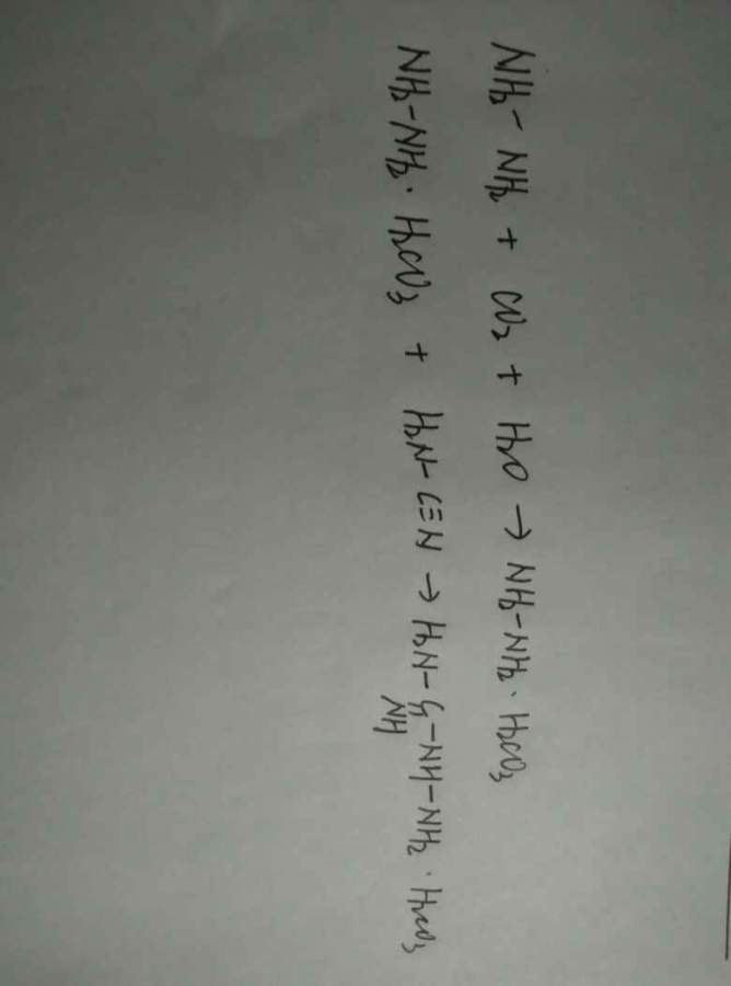 水合肼中通入二氧化碳,调节PH到7,二氧化碳的吸收速率为6mol/l/s,怎样计算用多大的反应釜?(年产5000吨氨基瓜碳酸盐,上述是反应的第一步,附图为反应公式) 发自小木虫Android客户端 |
