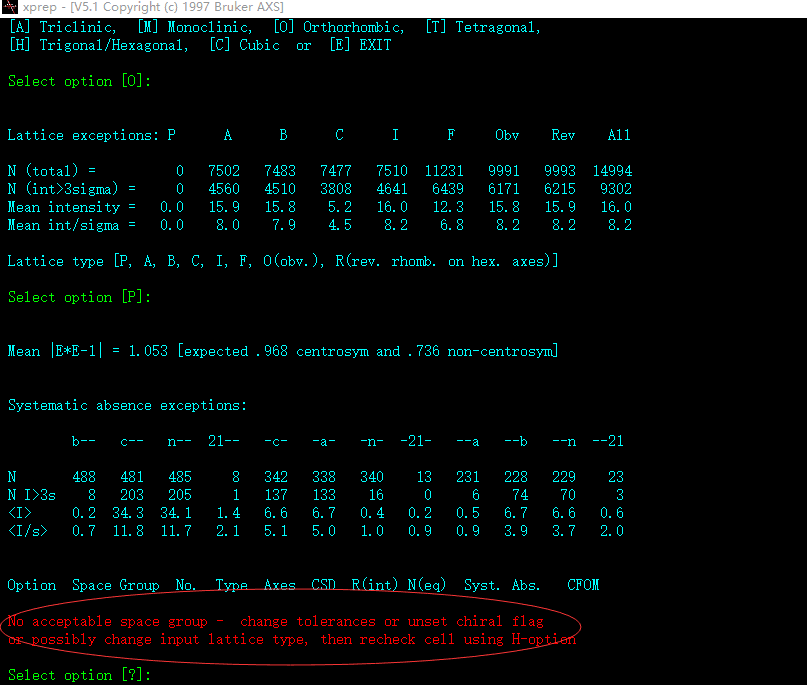 怎样输入具体的空间群,按照程序步骤,选择P格子,就进行不下去了!!!