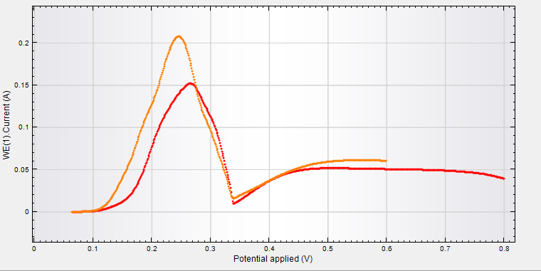 工作电极为磷铜,溶液为酸性镀铜液,红色是没有氯离子的,橙色有,但是有点不知道怎样分析了。临界电流越大,是不是代表溶解速度越快?电化学溶解性月好?那临界钝化电压是怎样分析的?看到有资料说是临界钝化电压越大,越不容易钝化,是不是这样的?如果是这样分析,不就是跟临界钝化电流的结论相反吗?还有就是橙色那条线的是不是整条曲线向左位移?如果这样的话,铜氧化成铜离子的电势比较负,这有利于那不就表示有利于溶解?那到底哪种分析才是对的?还有一种说法是说电位是热力学参数,电流是动力学参数,所以只要看电流就行了,这种说法有根据吗?现在感觉雨来越乱了,很多矛盾。感谢各位了 111.png@VIMPILE@louderbe@langzhizhou@a88592718 |