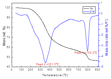 脱碱木质素热重处理 选用的是N2作为的载气 升温速率是20℃/min 请问350℃和800℃分别出现的 失重峰应该怎么解释,尤其是800℃的