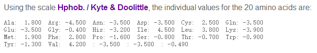 [求助]关于hphob./kyte & Doolittle 标度中缬氨酸val 给了四个值,求解释,拜托!