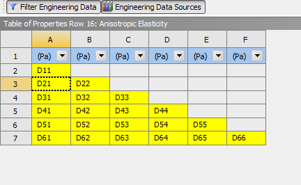 如图,各向异性弹性参数表该如何填写呢。黄色部分代表的什么意思呢。有做过的人吗,请指教一下!!![]() anisotropic elasticity.png@wuming524 |