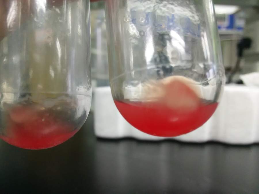 我做了如下处理:全血与抗凝剂混合,然后3000r离心得到红细胞,用1倍PBS清洗3次后再用0.25倍的PBS低渗处理30min,用0.25PBS洗3次,再用去离子水洗一次,得到如图,请大神帮忙看一下白色的沉淀是什么? IMG_20160505_145145.jpg |