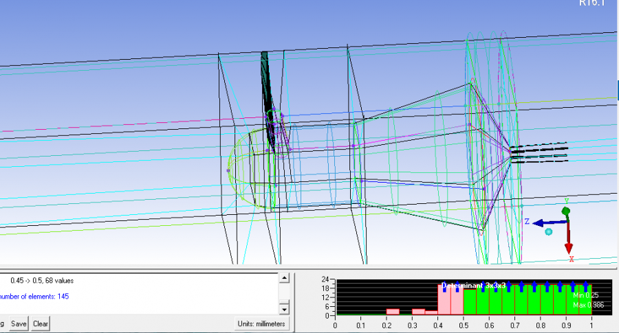 用ICEM把网格画好了,3×3×3检查没有啥负质量网格,但是也有些网格看起来不正常 用Aspect ratio检查一下,居然最大的是300多。。。改变了节点和节点分布律,但是调了一个晚上没有调好。。所以来求助大神。 tin和blk已经上传,支撑处不用费心再构建O型网格 (设置了Y+值,第一层网格为0.4左右,Aspect ratio更大。。。) @追梦De行者 |