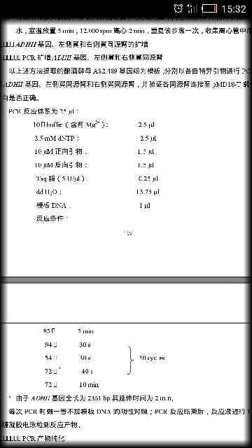 最近做酵母adh2基因的pcr,但是每次都不能p出来,电泳没有条带。adh2基因2364bp,下图电泳图中中间那条带为酵母dna。电泳时pcr量3μl和0.5μlLoading buffer混匀点样。求不能p出来的原因?谢谢大家啊 @biostar2009 @youlinglyw @飞约疯人院 发自小木虫Android客户端 |