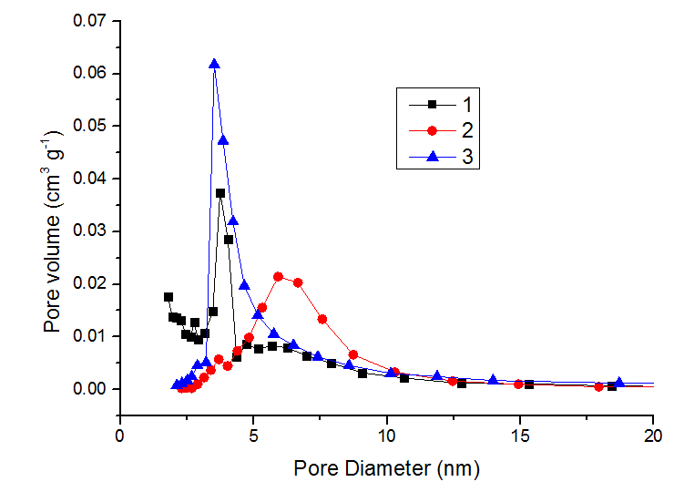 那再请问一下,我的孔径分布图是这样的。然后1号样品的比表面积最大,但是孔径最小,2号样品的孔径最大,但是比表面积最小,3号样品的比表面积居中,孔径也居中,但是孔容最大。。。