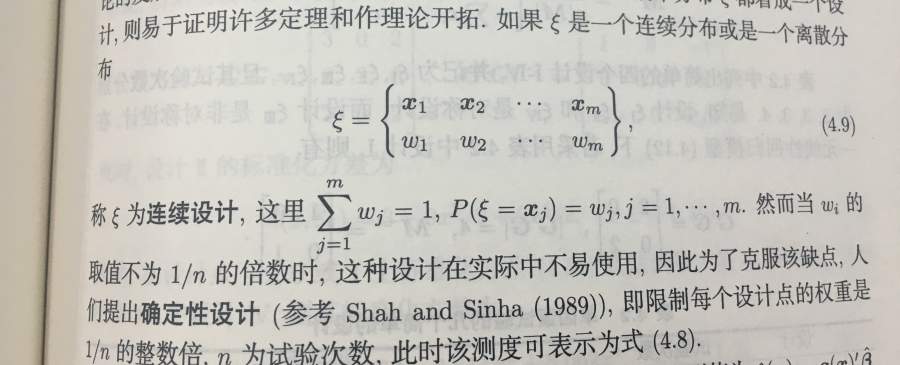 附件图片中给出了连续设计的概念,为什么可以说它是一个连续的设计啊,它只给出了有限个点,怎么可以说连续呢?其实,我也不明白为什么连续分布和离散分布都可以写成(4.9)式的样子。