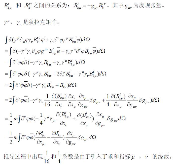 这几步推导主要是对作用量进行变分,用到了一点黎曼几何和量子场论中狄拉克矩阵的知识。