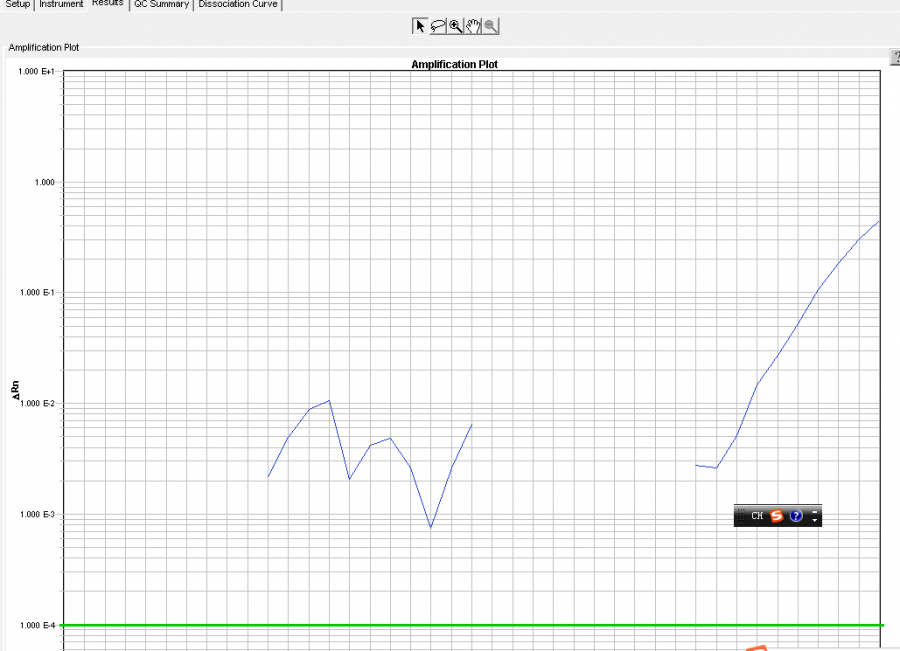 第一次用Taqman探针做Q-PCR,结果如图所示,请教大神,这是怎么回事啊, 流程master mix 2.5ul assay mix 0.5ul DNA 10ng/ul 2ul Q-PCR 95度 10min 95度 15sec 60度 6osec 40循环 1111.png 111112.png |