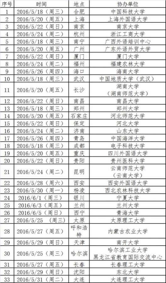 根据往年经验,录取名单发布日期会在第一场行前培训会5个工作日发布。今年第一场在合肥,5月18日,所以,录取名单发布日期,就在这几天,5.12 or 5.13。 为贯彻落实《2015-2017年留学工作行动计划》,深入、持续宣传“平安留学、健康留学、成功留学”理念,进一步推动出国留学行前培训工作的稳步发展,围绕当前以公派留学人员为主导,自费留学人员为主流的新时期出国留学工作格局,中心拟在在教育部国际司领导下实施2016年“平安留学”行前培训计划。 具体时间安排 http://muchong.com/bbs/viewthread.php?tid=10296008 w59h2955820_1462844628_342.png |