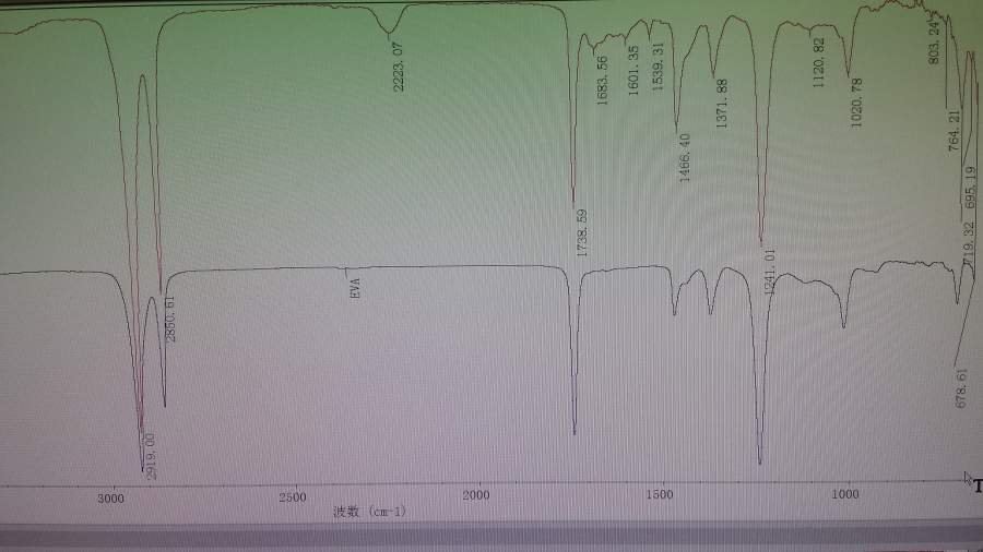 使用尼高力Is 10红外光谱仪测试,扫描16次,ATR模式。 样品是EVA发泡材料,这个材料主体是EVA。 在2223波数出现一个宽峰,我无法判断是什么物质,排除氰基,这类材料一般也不会添加异氰酸酯或异硫氰酸酯。 重复测试几次,也是这样,不存在样品污染问题。 请求大神解答 EVA快熟鞋.jpg |