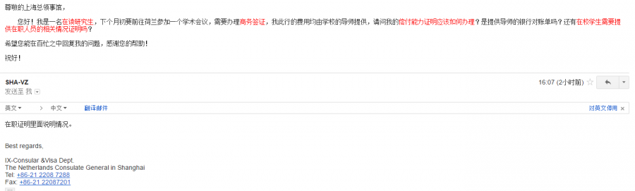 六月初要参加一个在荷兰举办的学术会议,需要办理申根商务签证,其中有一项材料是需要提供偿还能力证明,我此行的费用是由导师资助的,请问这个偿还能力证明应该如何办理呢?邮件咨询了上海领事馆,说是要在在职证明里说明,学院老师说没有开过类似的证明,而且我还只是个学生,并没有收入和工作年限,请问该怎么写呢,有没有类似情况的小伙伴呢,麻烦答疑解惑啊~ |