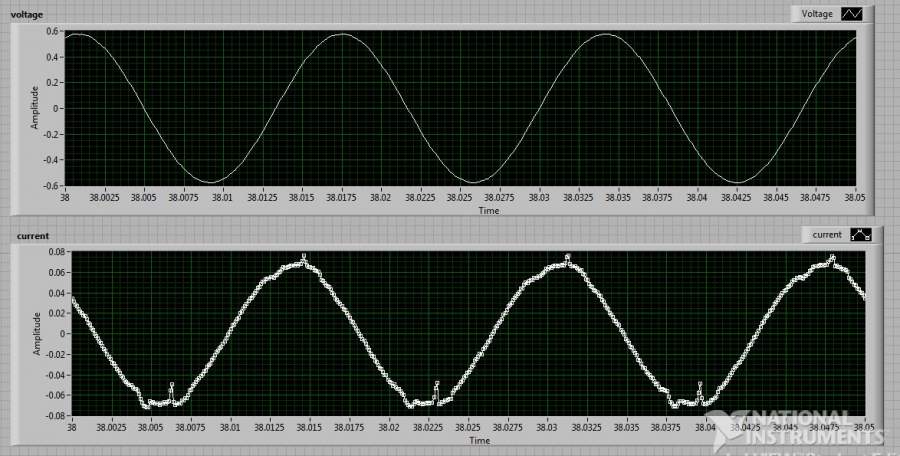 Piezoelectric fan通交流电后电流曲线出现小的跳跃
