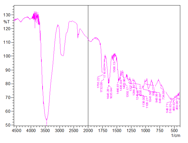 想把一个物质接上羧基,图1是原料的红外图谱,图2是样品的图谱,麻烦大家帮忙看下为什么原料有1732的羰基峰而样品却无这个特征峰,样品只有1650的峰而且原料也有,这是怎么回事呢? 图1.png 图2.png |