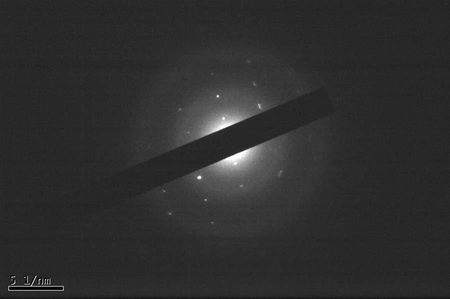 最近制备一晶体,TEM衍射花样如图 原始数据下载地址:http://pan.baidu.com/s/1i52L35F 麻烦大神帮忙解一下,确定一下晶面指数。不胜感激。 |