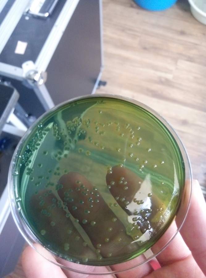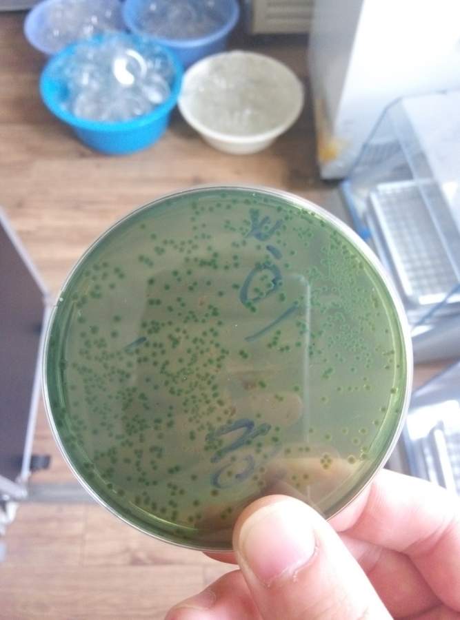 请做过副溶血性弧菌的师兄师姐帮忙鉴定一下,TCBS上的副溶血性弧菌 已有2人参与