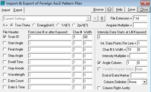 XRD分析软件JADE6保存txt不能显示2theta以及pdf卡片导入问题