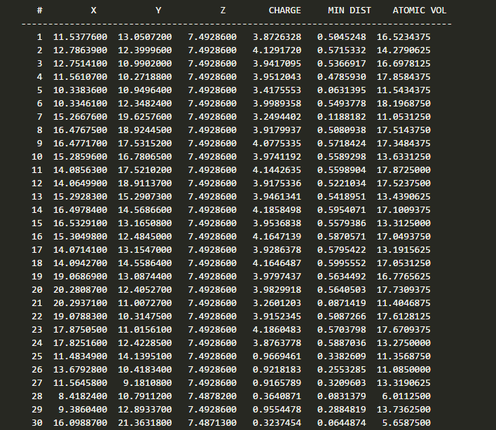 下图是ACF.dat内容:43-45为氧原子,1-24是碳原子,25-42是氢原子,为什么氧原子不是显示的负电? @E]N)`CV}TLZRX9)X86PZDC.png `[_D(F6@29KK9Z12K4PQF82.png |