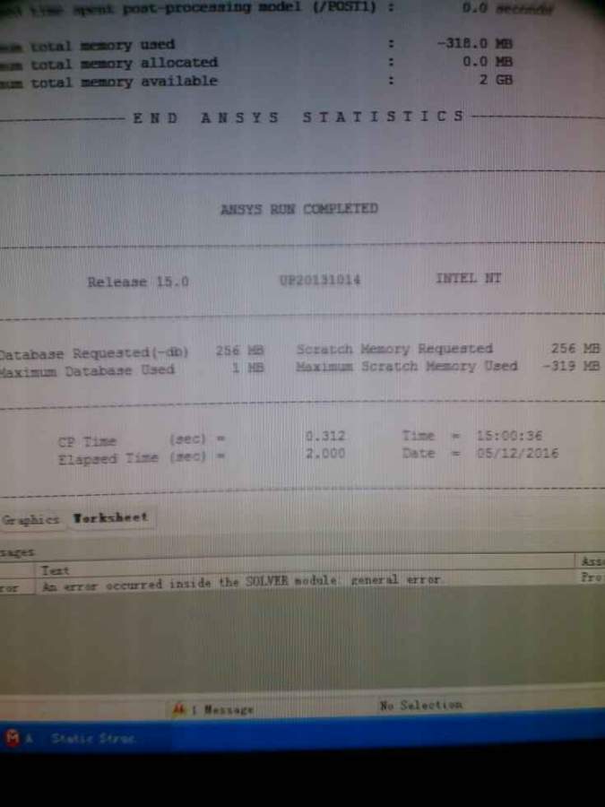做一个线形静力结构分析算例时,总提示内存不足(如图),模型也很简单。即使在设置里修改内存,降低网格数量,甚至换其他算例,也只一莫一样的提示内存不足,而且不足内存都是319M。求解决方法! @wuming524 发自小木虫Android客户端 |